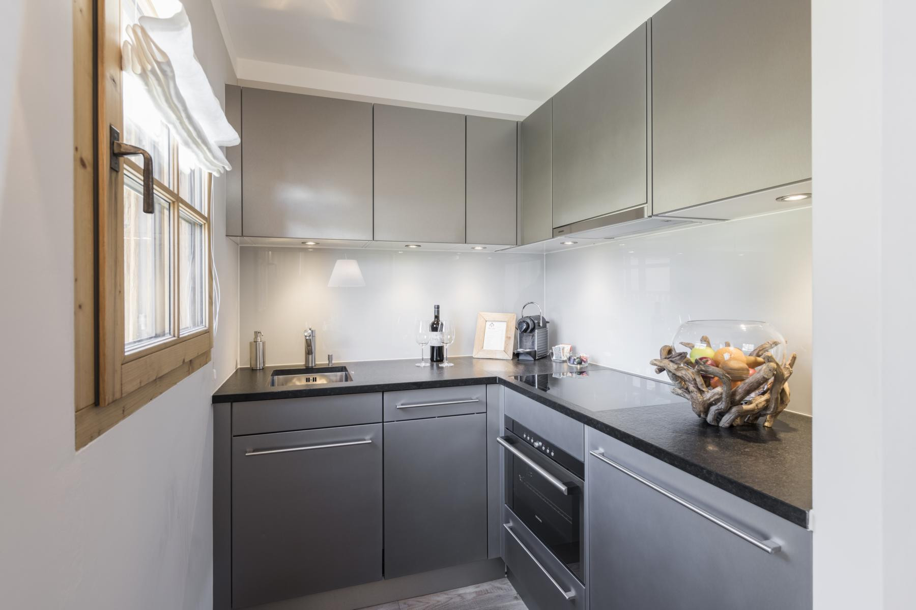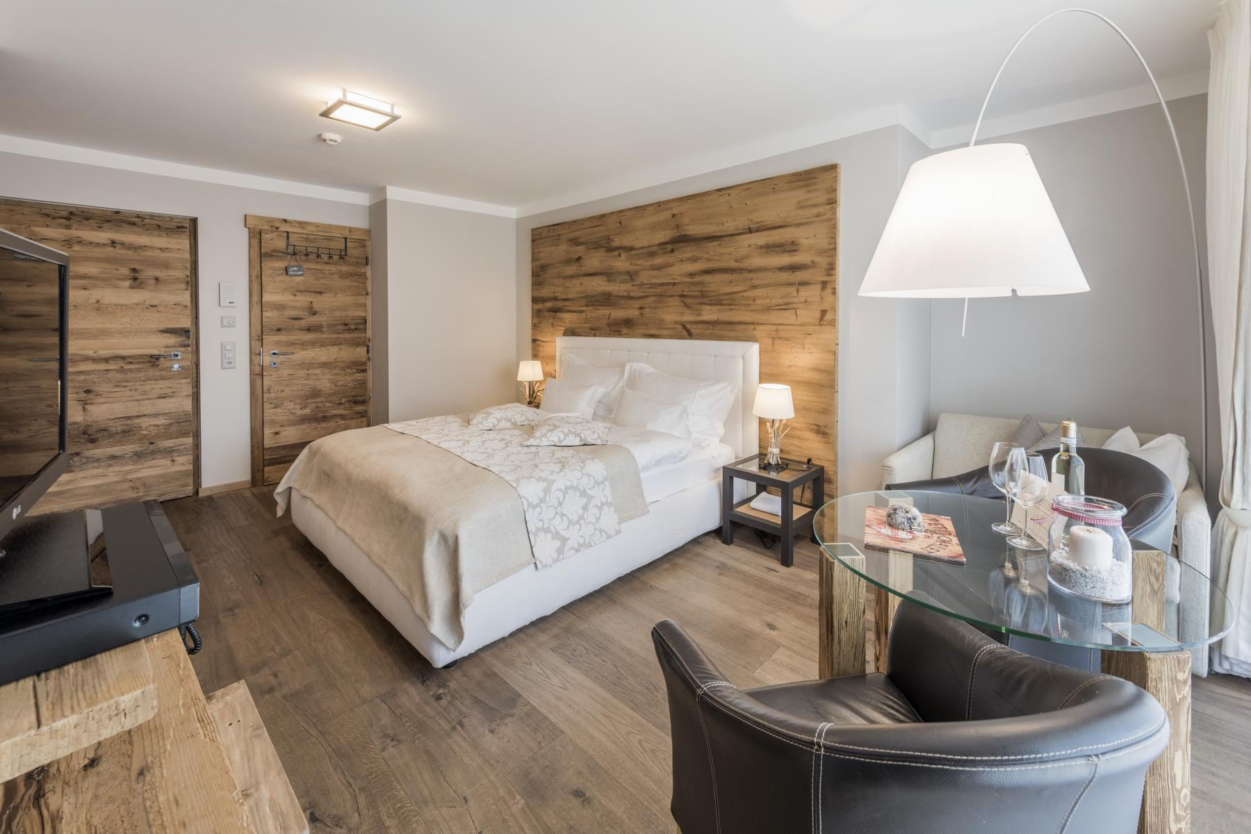 Das Zimmer ist im modernen Chalet bzw. Bergstil ausgebaut und verfügt über 1 Bad mit Naturstein, Dusche, WC und Haarfön, kleiner Küche mit Spül- und Kaffeemaschine, einem Sitzplatz, Safe, Telefon, TV und kostenlosen Wireless-Zugang sowie Gartensitzplatz. Das Zimmer kann auf Wunsch mit einem weiteren Doppelzimmer verbunden werden.